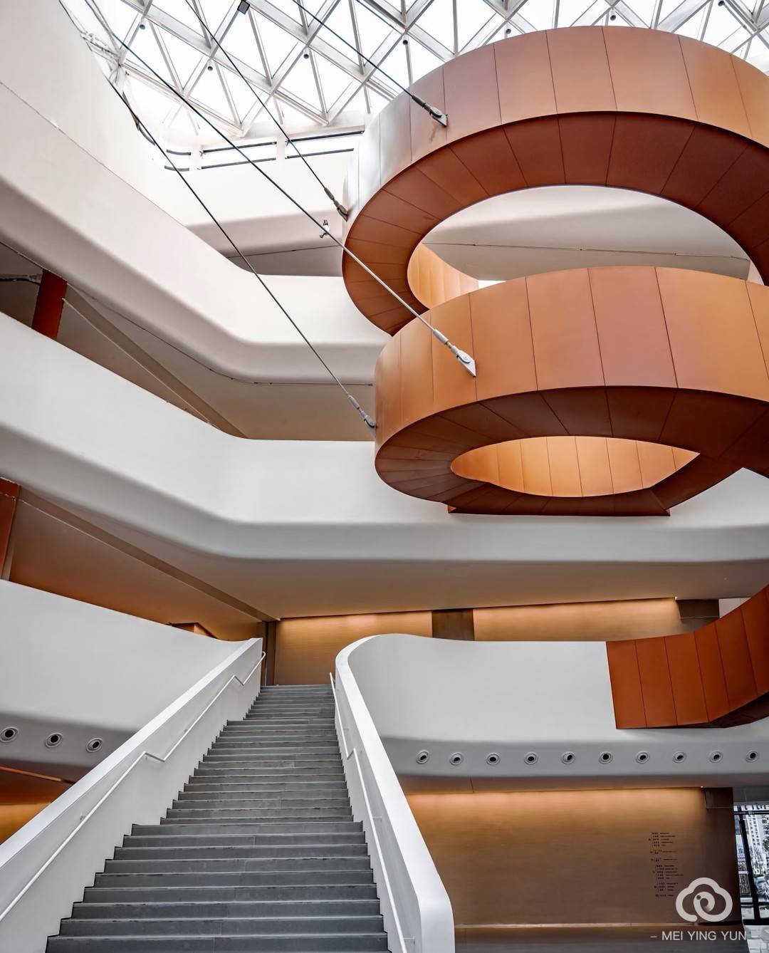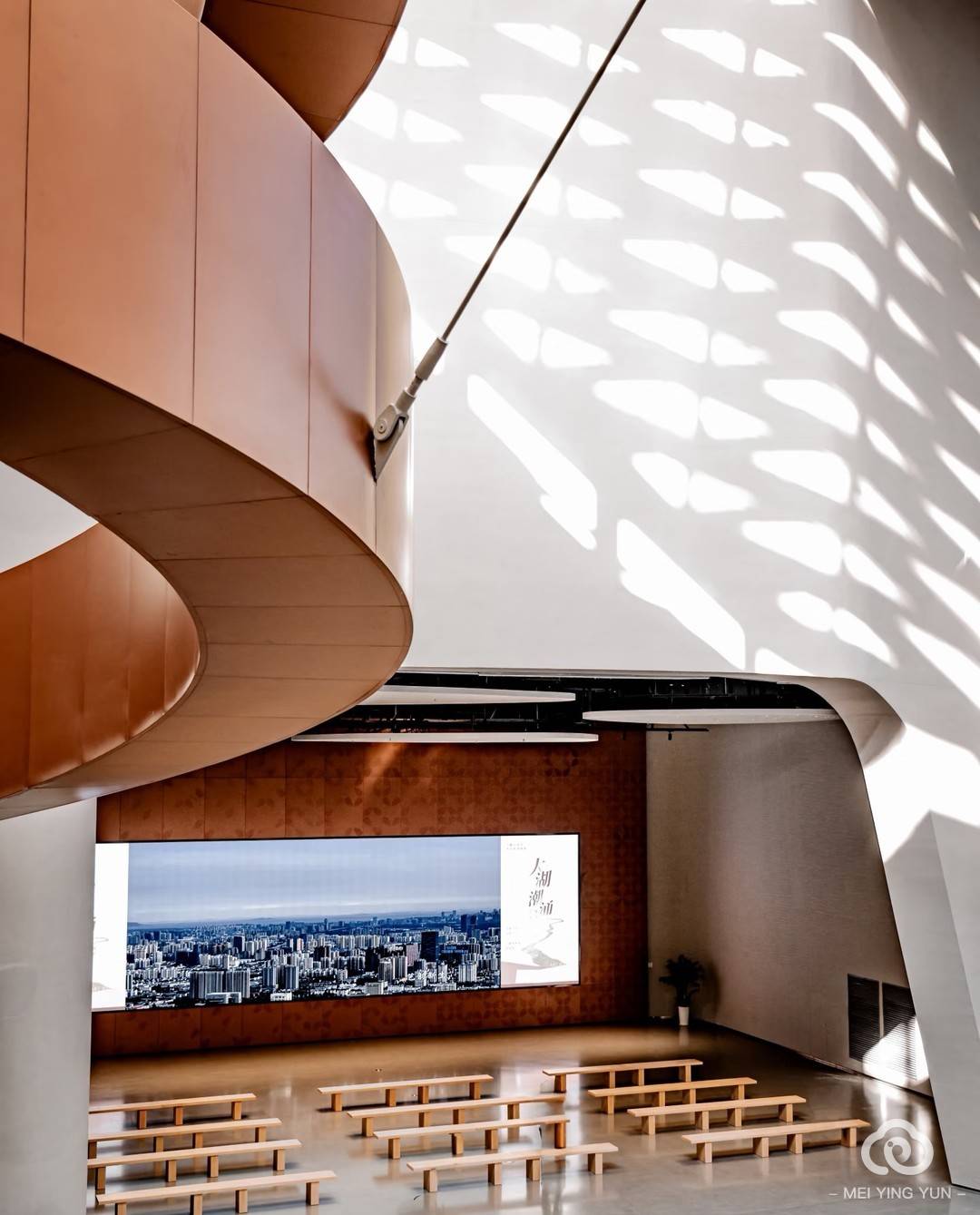 合肥再添一座新地标|市美术馆等你来打卡期待已久的合肥市美术馆开启试运营啦合肥又有了一张新的城市名片 市美术馆的建筑外貌并不仅仅是白色那么简单,外立面纹样以合肥市花﹣"桂花"为原型,采用花瓣造型镂空板设计,巧妙展现了合肥城市特色。建成并投入使用的市美术馆填补了之前省博物院东南方向地块的空白,与安徽博物院蜀山馆、省地质博物馆在功能上形成了内在的统一,实现了"三位一体"的效果。 除了俯视仰视旋梯的视角,多媒体报告厅同样也挺出片,非常适合超广角拍摄。 试运行期间,合肥市美术馆率先推出三场重量级展览,分别为"徽风激荡.皖韵流芳﹣'五大文化'美术作品邀请展""第十四届全国美术作品展览进京作品(部分)巡展.合肥""人间真情﹣丰子恺漫画艺术精品展",涵盖国画、油画、漫画等多个艺术门类,欢迎大家前来观展