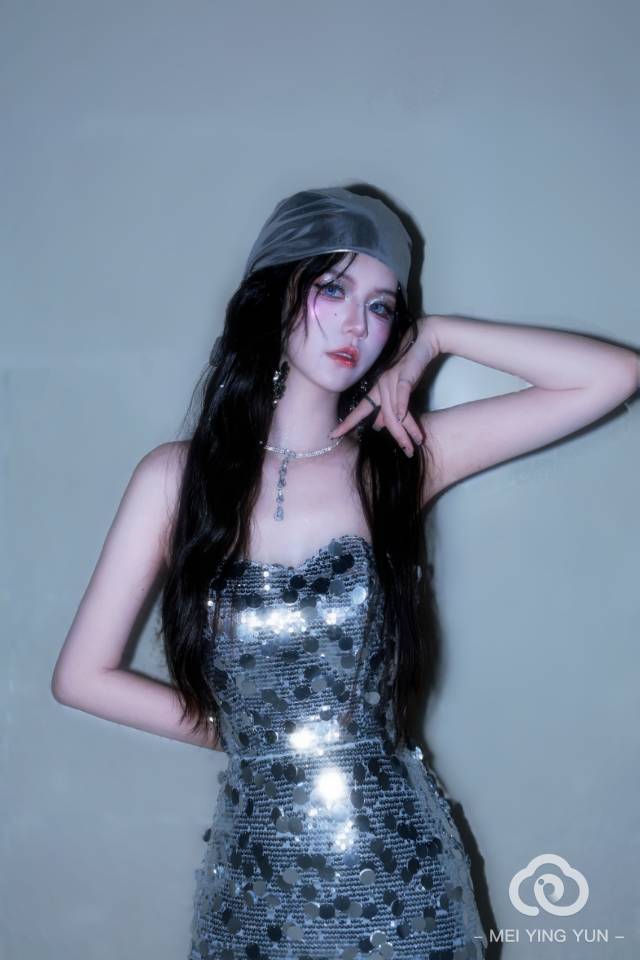 银箔裹住晚风,亮片缀满星光 金属贝雷帽压下慵懒,人鱼裙漾开锋芒在明暗交界的镜头里,做自己的宇宙主角 每一寸光影,都在为这份冷艳与热烈,量身定做